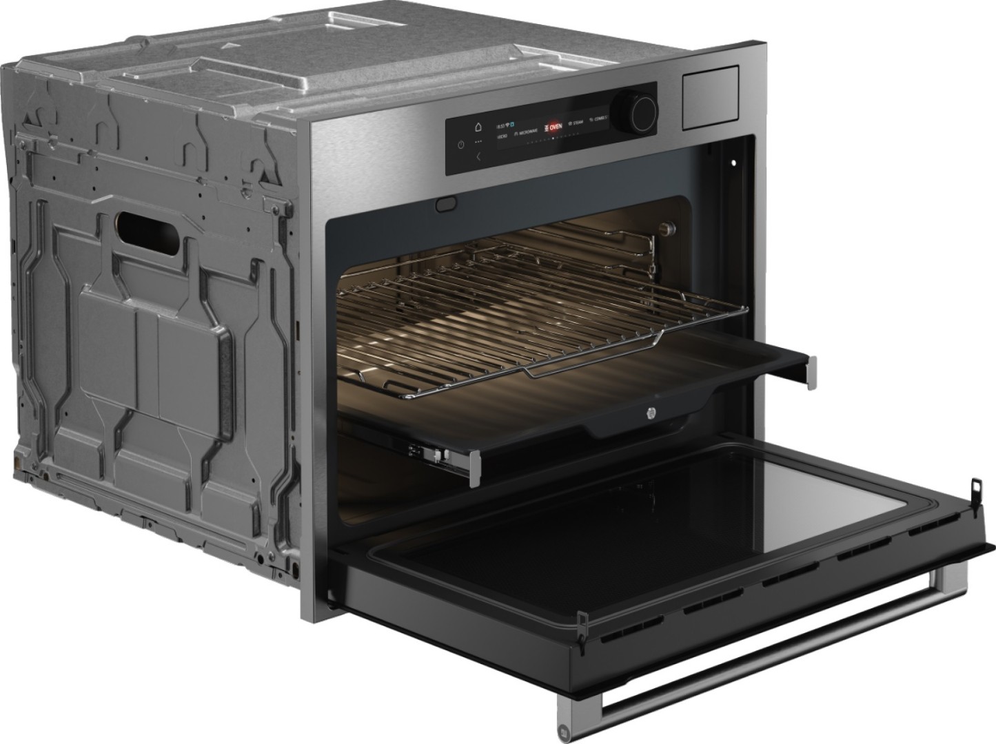 Конструкция дверцы с применением трех стекол позволяет снизить температуру фронтальной поверхности до минимума. Все это снижает потребление электроэнергии и делает приготовление полностью безопасным.