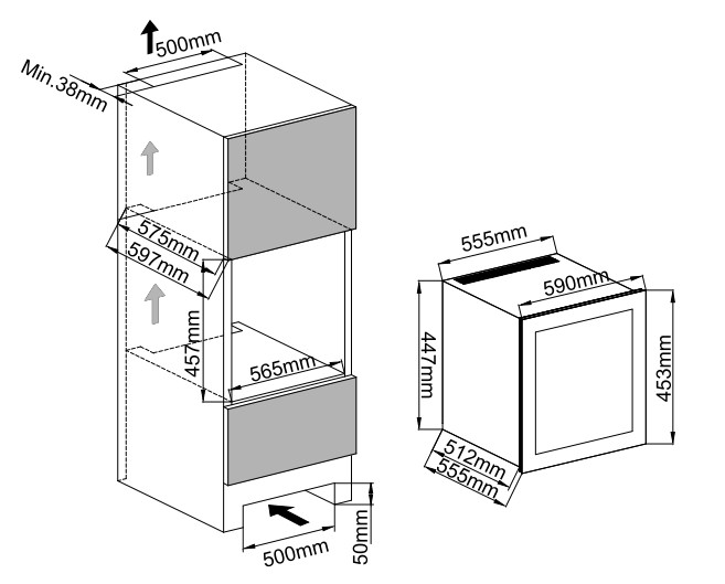 - При установке с помощью ножек отрегулируйте винный шкаф по уровню и убедитесь в наличии необходимых зазоров между дверью и мебельными фасадами, чтобы не повредить их.