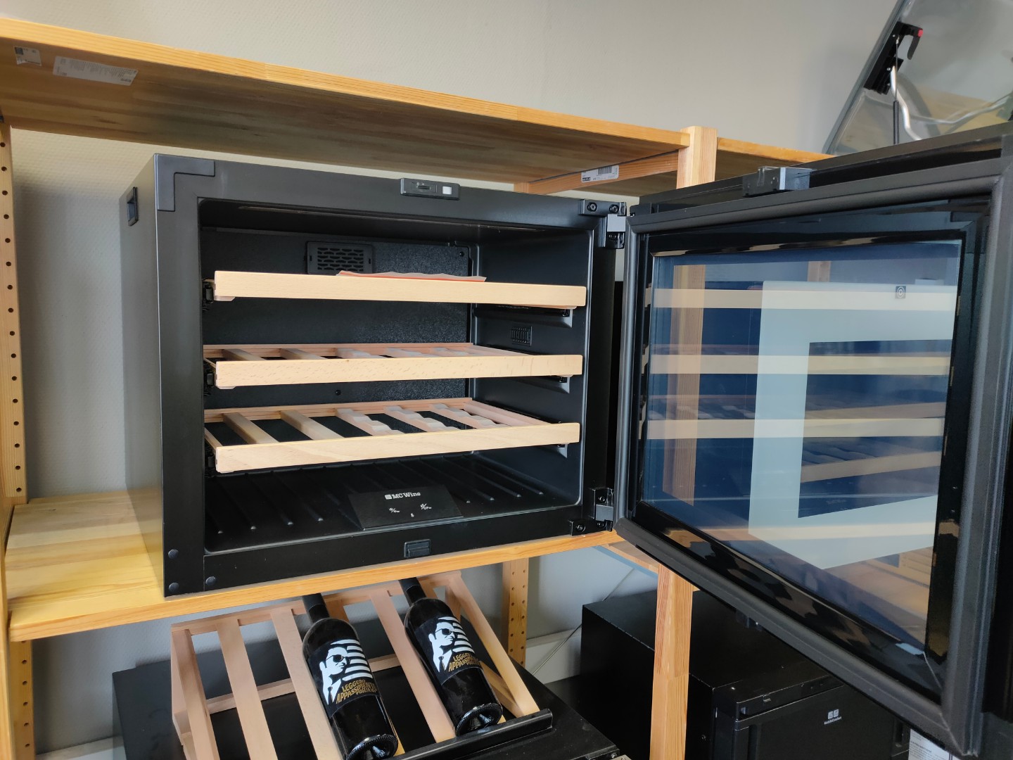 - Винный холодильник MC Wine W24S Touch Open стабильно держит заданную температуру при любых внешних условиях;